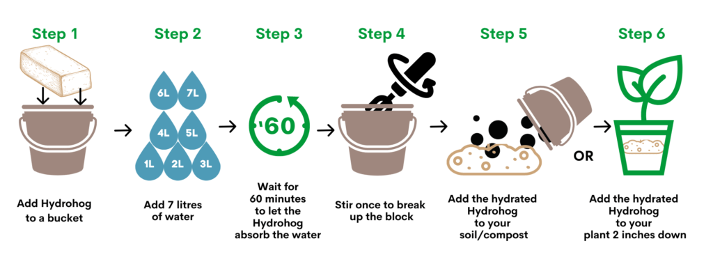Place One Hydrohog block into a bucket and cover with 7 litres of cold water