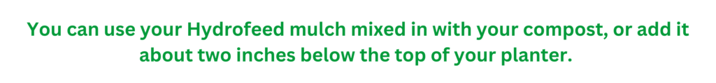Add 7 litres of Hydrohog mulch to approximately 20 litres of compost or add the mulch directly to your plant-pot a good two inches into the pot and top up with fresh oil/comport